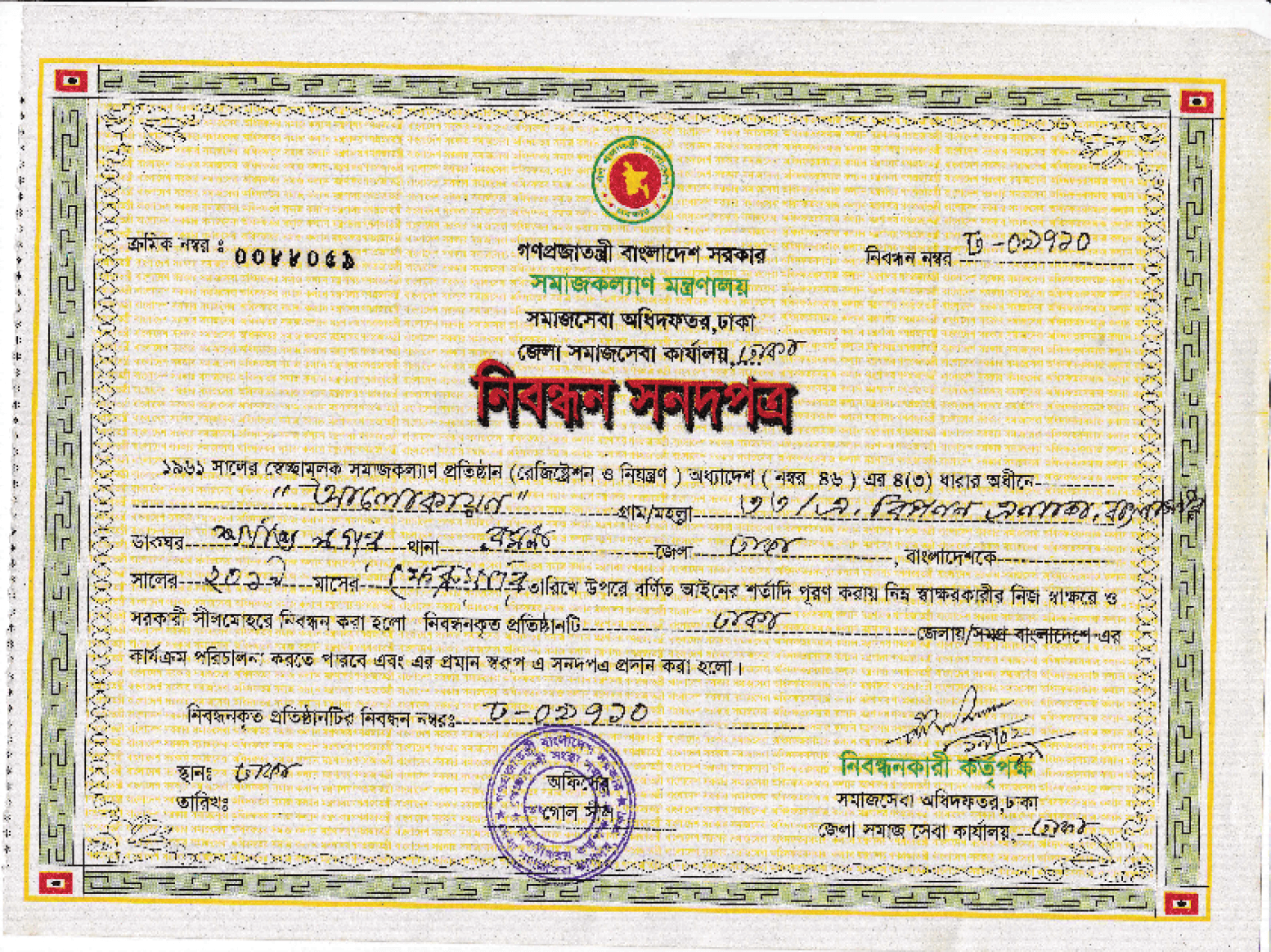 Approved by the Ministry of Social Welfare, People's Republic of Bangladesh.